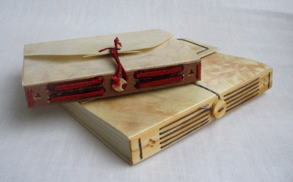 Knižní vazby jsou vyrobeny z ručně ušitého knižního bloku a desek, vyrobených z lepenky nebo dřeva a pokryvu koženého, pergamenového a papírového.