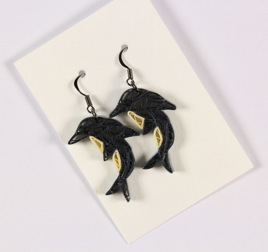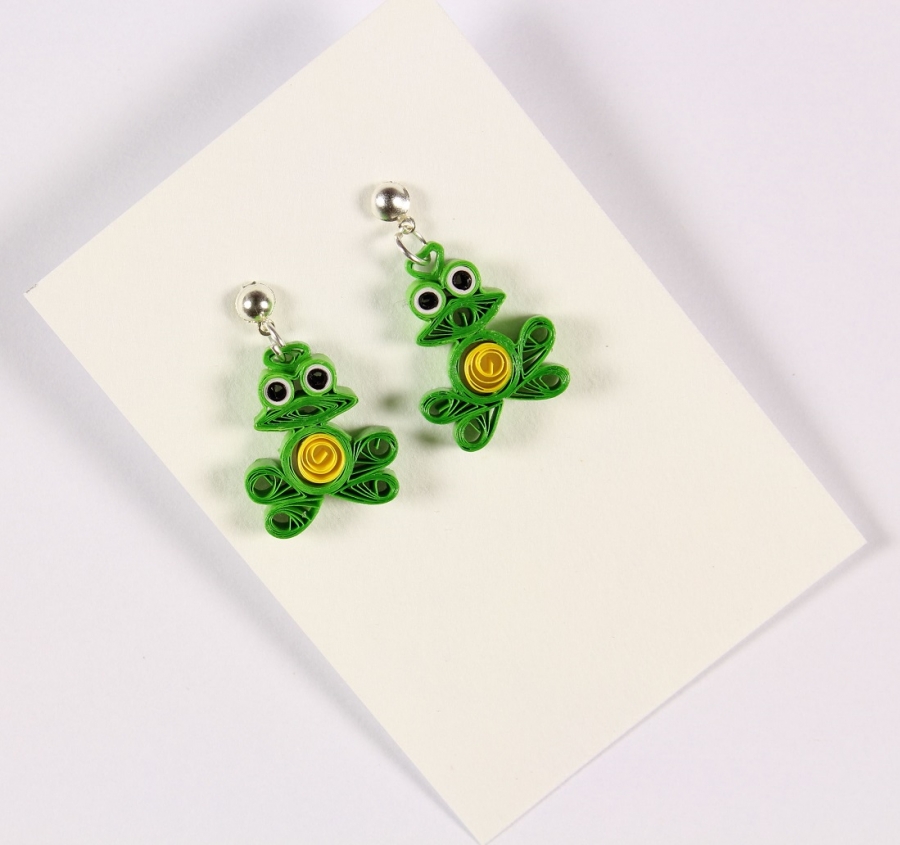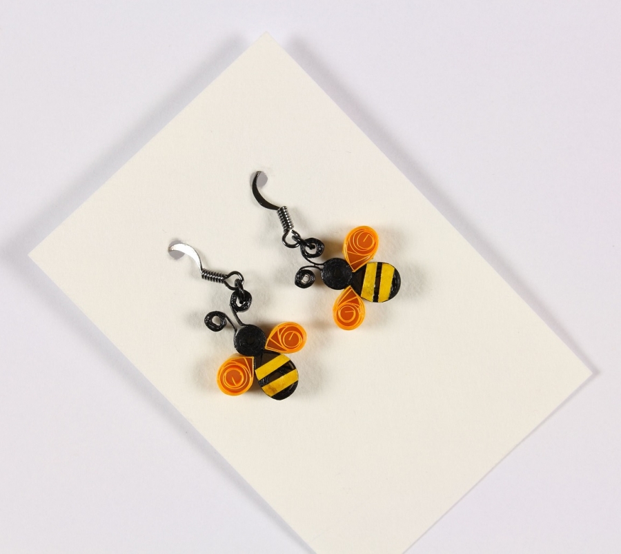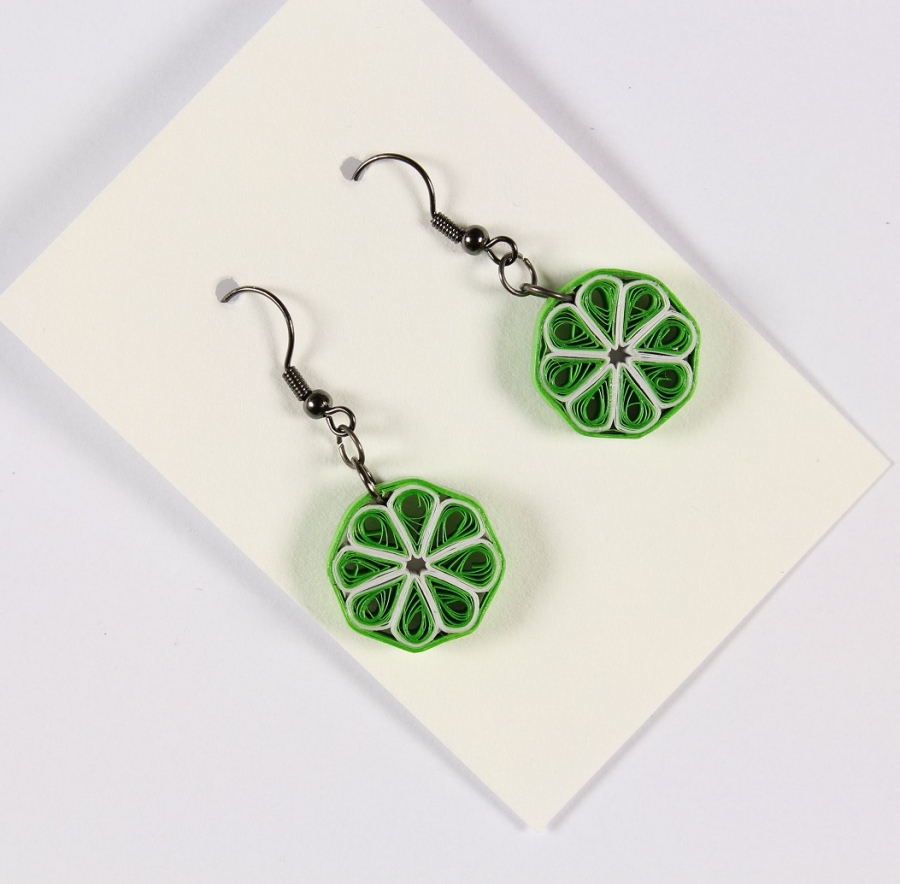 Náušnice jsou vyrobené z barevného papíru a jsou zalakované, aby byli odolnější.
