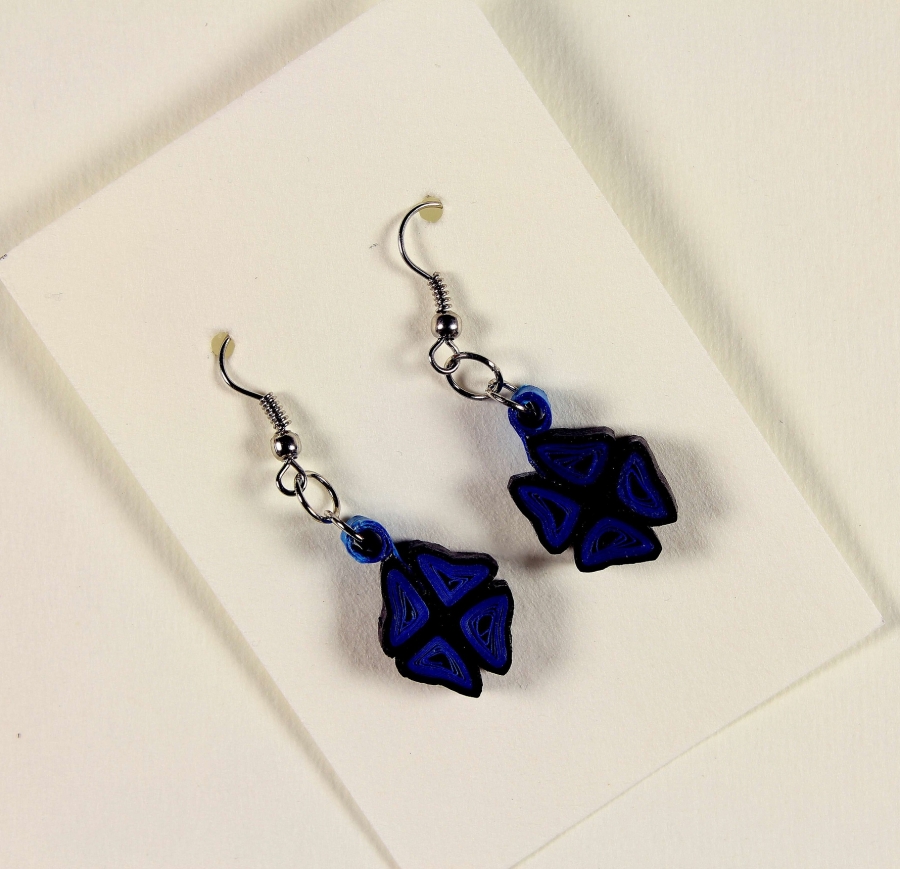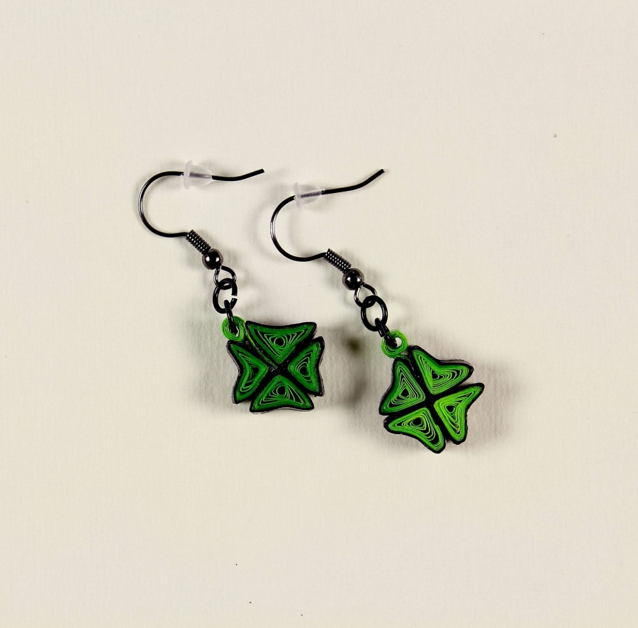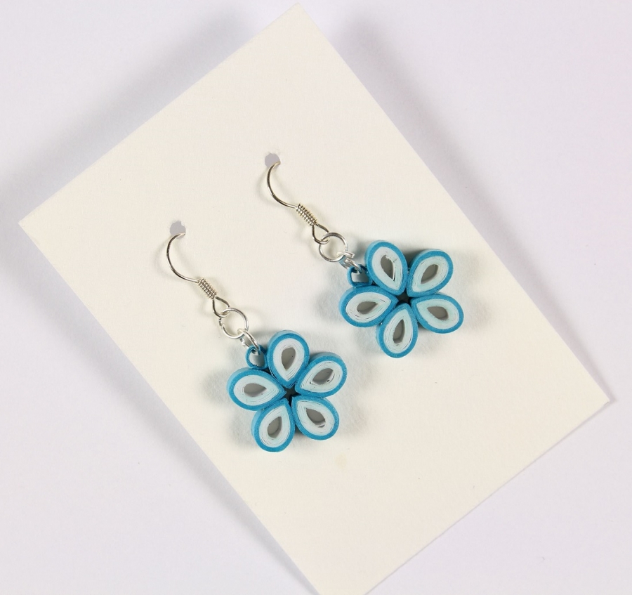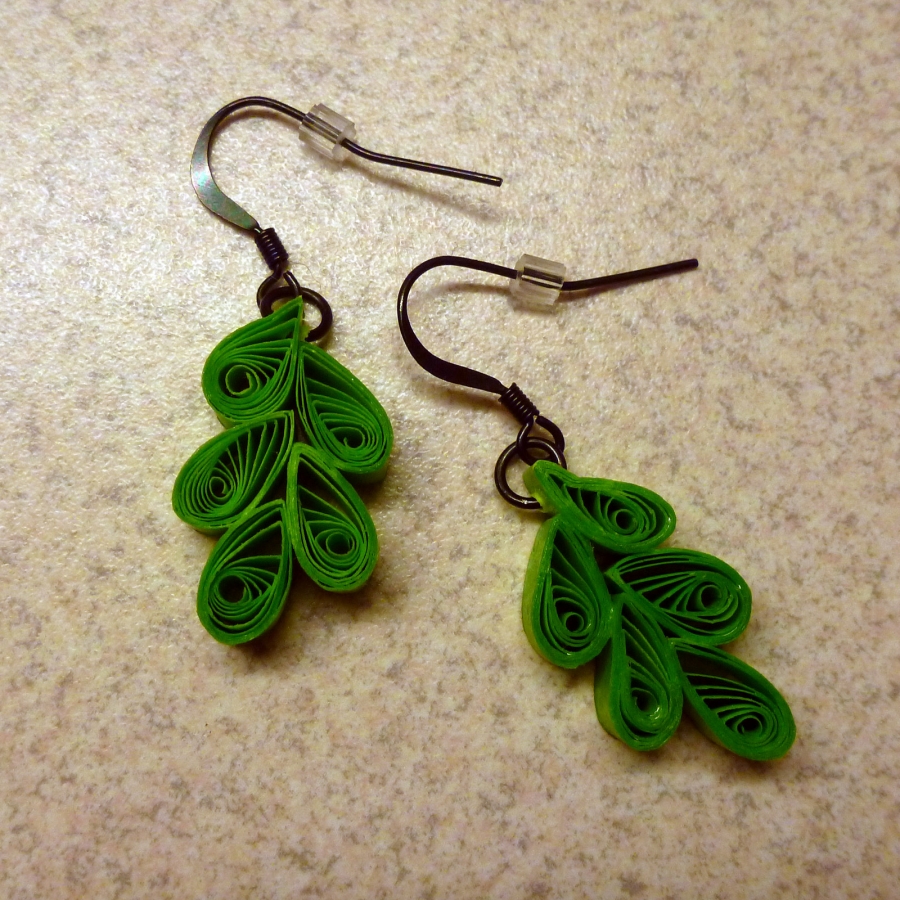 Náušnice jsou vyrobené z barevného papíru a jsou zalakované, aby byli odolnější.