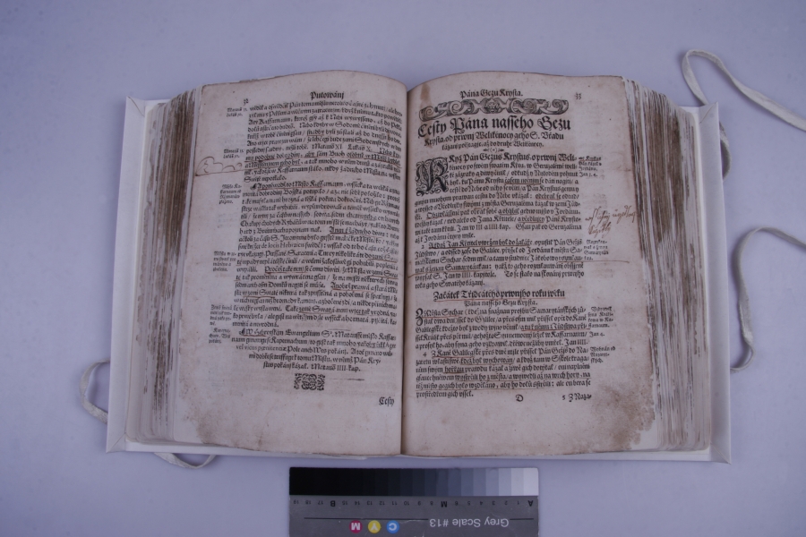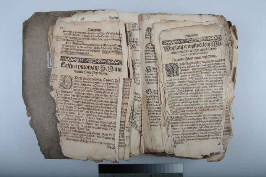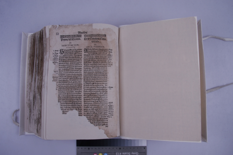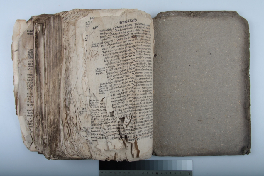 Dalších osm fotografií, rovněž ukazují stav před restaurováním a po jejím dokončení. Tato kniha je datována do roku 1554. V tomto případě se jednalo o záchranu prasklé dřevěné zadní desky.